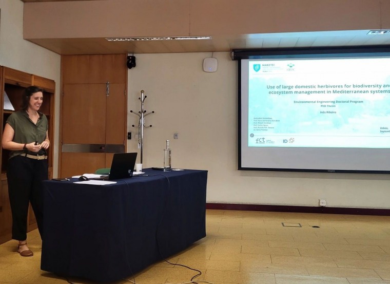 Inês Ribeiro (MARETEC/LARSyS) defendeu com sucesso a sua tese de doutoramento, intitulada “Use of Large Domestic Herbivores for Biodiversity and Ecosystem Management in Mediterranean Systems.“, sob orientação de Vânia Proença e Tiago Domingos (MARETEC/LARSyS) e de Davy McCracken. O grau foi obtido com distinção.